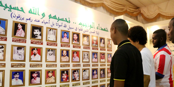حيث استوقف الجميع عند اللوحة الخاصة بقائمة شهداء الواجب ودعوا لهم بالمغفرة، وشهد المعرض تقدير الجميع للشهداء الذين ضحوا بأرواحهم في سبيل الوطن وتحقيقاً لأمنه واستقراره؛ مبدين إعجابهم لما ضمه المعرض من معروضات لاسيما قائمة صور الشهداء.