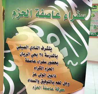 عززت الإدارة العامة للتعليم بمنطقة القصيم تجسيد أواصر التلاحم بين مناطق المملكة بعد أن استقبلت سفيرات الحزم من منطقة جازان واللاتي قضين خمسة ايام بالقصيم ضمن سلسلة برنامج (سفراء الحزم) والذي يهدف للوقوف المعنوي مع أهالي المناطق الجنوبية للمملكة ولتعريف الوسط التعليم بالأوضاع والتلاحم الكبير الذي تشهده المنطقة.