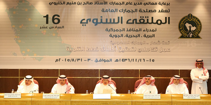 وقال الخليوي في كلمته التي ألقاها خلال افتتاحه أمس أعمال الملتقى السنوي السادس عشر لمدراء المنافذ الجمركية «البرية والجوية والبحرية» تحت شعار «الجمارك السعودية.. عمل تكاملي لتحقيق أهداف خطط التنمية» والذي تستمر فعاليته لمدة يومين، وذلك بالقاعة الرئيسة بديوان المصلحة، قال يأتي عقد هذا الملتقى امتداداً للاجتماعات المتواصلة التي تعقدها مصلحة الجمارك العامة والتي تهدف إلى معالجة أي معوقات قد تطرأ على العمل الجمركي، بالإضافة إلى إتاحة الفرصة من خلال هذه الملتقيات لطرح الأفكار والمقترحات بشكل مباشر.