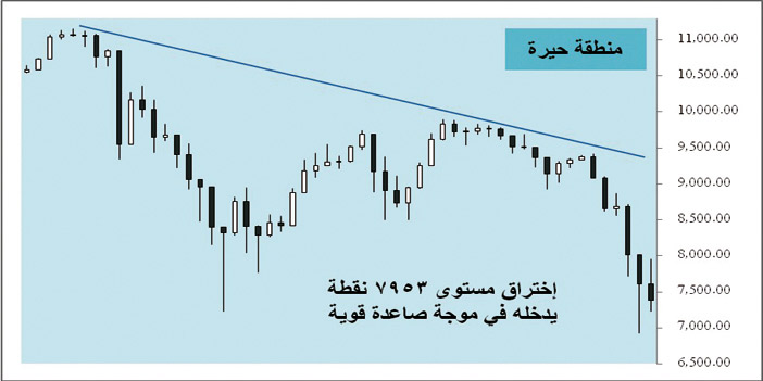 ارتفع العائد على السوق وفق المكرر الربحي الحالي إلى 7.14% مما قلص من المخاطر المحيطة بالسوق، ويبدو أن السوق إما أنه اختار قاعه أو أنه قريب منه وأن الموج الهابط القوي انتهى معظم عمره الزمني وما تبقى هو رقرقة في مويجات معقدة، قد لا تخدم المضارب اليومي، ويرجح الأسبوع المقبل أن يغلق السوق بنمط شرائي جيد وتمركز أكثر في شركات استثمارية ذات طابع محلي، أما المؤشر العام سيكون محل جدل غير مجد.