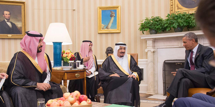 في بداية اللقاء أكد خادم الحرمين الشريفين الملك سلمان بن عبدالعزيز على متانة وقوة العلاقات السعودية – الأمريكية، وقال – حفظه الله – خلال اجتماعه أمس بفخامة الرئيس الأمريكي باراك أوباما في البيت الأبيض في واشنطن، لكون الولايات المتحدة الأمريكية هي الدولة الأولى لزيارته الرسمية منذ توليه الحكم لهي دلالة على العلاقات القوية بين الرياض وواشنطن والممتدة على مدى تاريخ طويل منذ لقاء الملك عبدالعزيز – رحمه الله – والرئيس روزفلت في عام 1945م.