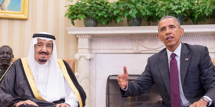 وأعرب خادم الحرمين الشريفين عن سعادته البالغة بزيارته لبلد صديق ولقائه مع صديق مؤكداً ان العلاقات السعودية الأمريكية مستمرة بما يفيد السلم العالمي ومنطقتنا على وجه التحديد، فنحن يهمنا أن يكون هناك استقرار في منطقتنا والعالم كله، وشكر خادم الحرمين الرئيس اوباما على كرم الضيافة، وأمل أن يتم تبادل الزيارات الرسمية بين البلدين الصديقين ومسؤوليها. في المقابل وصف الرئيس الأمريكي باراك أوباما اجتماعه بخادم الحرمين الشريفين الملك سلمان بن عبدالعزيز في البيت الأبيض أمس بالاجتماع العميق الذي تناول جميع القضايا. وشكر الرئيس الأمريكي خادم الحرمين أن تكون الولايات المتحدة الأمريكية أولى الدول التي يزورها الملك سلمان بعد توليه الحكم، منوها إلى أن ذلك يعكس متانة العلاقات الثنائية بين الرياض وواشنطن. ومضى الرئيس الأمريكي بقوله لدينا الكثير من الاهتمامات المشتركة تجاه الشأن اليمني ولا سيما العمل على إعادة الحكومة الشرعية، ونشترك في الكثير من مشاعر القلق تجاه الأزمة في سوريا ولقاؤنا اليوم سنتبادل الحديث العميق حول امكانية انتقال السلطة سلميا في سوريا، ومن شأنه أن يخفف من المأساة المروعة في سوريا.