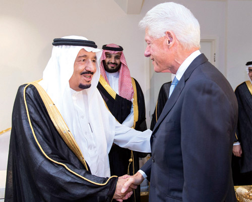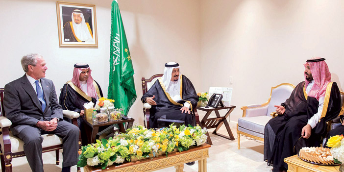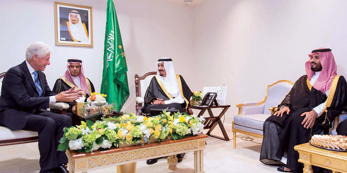 استقبل خادم الحرمين الشريفين الملك سلمان بن عبدالعزيز آل سعود في مقر إقامته - حفظه الله - بمدينة واشنطن امس فخامة رئيس الولايات المتحدة الأمريكية السابق جورج دبليو بوش وفخامة رئيس الولايات المتحدة الأمريكية الأسبق بيل كلينتون، كلاً على حدة .