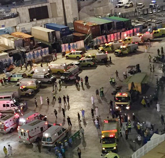 أعلنت الأجهزة الصحية في مكة المكرمة حالة الاستنفار من الدرجة القصوى وأعلنت الحالة (الحمراء) لكل مستشفياتها، بينما رفعت أجهزة الدفاع المدني والأجهزة الأمنية للحالة القصوى عقب سقوط رافعة داخل الحرم المكي الشريف وخلفت قتلى ومصابين.