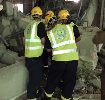 فرق الهلال الأحمر السعودي تباشر حادثة سقوط رافعة في الحرم المكي