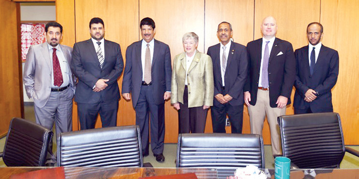جاء ذلك خلال لقائه برئيسة جامعة ولاية ميتشيجان الأمريكية البروفيسورة لوانا سايمون في مقر الجامعة بالولايات المتحدة الأمريكية, مشيراً إلى أن جامعة القصيم تسعى لاختيار شركائها بعناية فائقة؛ وذلك تحقيقاً للأهداف المنشودة من عقد اتفاقيات مع جامعات عريقة ومشهود لها عالمياً بالتميز البحثي, مؤكداً أن اختيار جامعة ميتشيجان يأتي ضمن هذا الإطار؛ إذ عُرف عن الجامعة تميزها، ولاسيما في مجال الزراعة؛ إذ تعد أول كلية زراعية أُنشئت بالولايات المتحدة، وذلك ما ننشده بكلية الزراعة والطب البيطري، وهو الاستفادة من تجارب وخبرات متراكمة لدى هذه الجامعة المعروفة عالمياً. مقدراً دعم سمو أمير المنطقة لتوجهات الجامعة الهادفة إلى تطوير الميزة النسبية لمنطقة القصيم المتمثلة في كونها منطقة زراعية توصف بسلة غذاء المملكة.