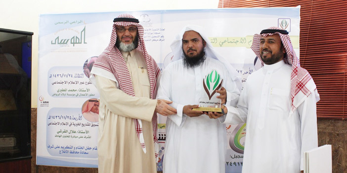 وأقيم حفل حضره مدير مركز التنمية الاجتماعية الأستاذ معجب الكبرى وجميع منسوبي لجنة التنمية الاجتماعية الأهلية بالأفلاج، حيث تم تكريم المشاركين بالملتقى وتسليمهم شهادات الدورة التدريبية، كما تم تكريم الفائزين والحاصلين على المراكز المتقدمة في مسابقة المُونتاج» الفيلم الوثائقي» بجوائز نقدية قدرت بحوالي ثلاثين ألف ريال.