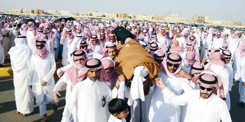 جاء ذلك خلال لقاء سموه بذوي شهداء الواجب بعد أن قام أمس بأداء صلاة الميت بعد صلاة العصر في جامع الملك فهد بن عبدالعزيز بمدينة حائل على شهداء الواجب بحضور صاحب السمو الملكي الأمير عبدالعزيز بن سعد بن عبدالعزيز نائب أمير منطقة حائل وصاحب السمو الأمير عبدالله بن خالد بن عبدالله مساعد رئيس الهيئة العليا لتطوير منطقة حائل، وشارك سموه وسمو نائبه وسمو الأمير عبدالله بن خالد بحمل جثامين الشهداء.