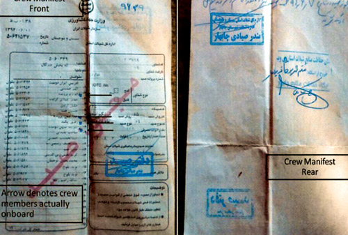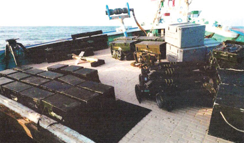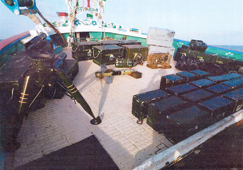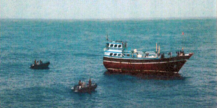 أعلنت قيادة تحالف دعم الشرعية في اليمن الذي تقوده المملكة العربية السعودية في بيان لها أمس إحباط محاولة تهريب أسلحة للميليشيات الحوثية عن طريق سفينة صيد إيرانية. وقالت إنها أوقفت السبت الماضي في تمام الساعة الواحدة ظهراً سفينة إيرانية على بعد 150 ميلاً جنوب شرق مدينة صلالة العمانية. وأفادت قيادة التحالف أن السفينة كان على متنها 14 إيرانياً بقيادة القبطان بخش جتكال حيث تم تفتيش السفينة وضبط عدد من القذائف والصواريخ وهي على النحو التالي : 18 قذيفة كونكورس مضادة للدروع. 54 قذيفة BGM - 17 مضادة للدبابات. 15 طقم بطارية للقذائف. 4 أنظمة توجيه للنيران. 5 بطاريات مناظير. 3 منصات إطلاق. 1 حامل منصة إطلاق. 3 بطاريات. وأوضحت قيادة التحالف أن السفينة مسجل باسم إيراني هوجان محمد حوت، وتدّعي أوراق السفينة أنها مهيئة للصيد وحاصلة على تراخيص من السلطات الإيرانية بالإبحار لصيد الأسماك، كما تفيد الوثائق أن السفينة تم فحصها من منظمة الموانئ والجمارك في محافظة سستان بلوشستان ومنحتها ترخيصاً للإبحار في منطقة صيد.