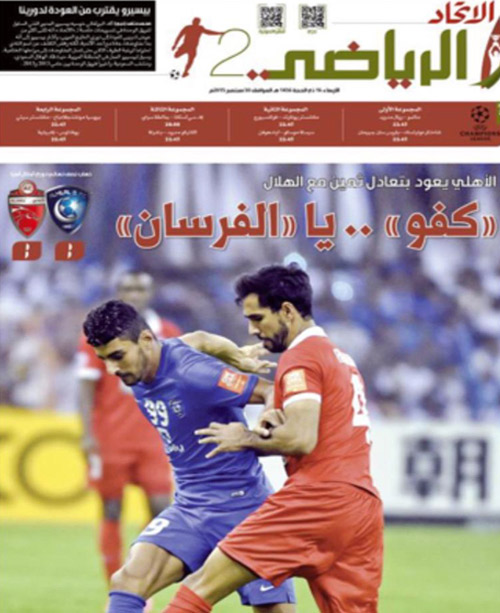 وأبرزت صحيفة الاتحاد الرياضي غلافها بمانشيت «كفو ... يالفرسان» مشيرة إلى عودة الأهلي بتعادل ثمين مع الهلال، كما أشادت الصحيفة بالجمهور الهلالي نظير رفعه علم الإمارات بالمدرجات.فيما عنونت «البيان» صفحتها الرياضية بـ«الفرسان حققوا المراد في الرياض» بيّنت أن تعادل الأهلي جاء بطعم الفوز أمام الهلال وسط أرضه وبين جماهيره التي تخطت حاجز 50 ألف مشجع في اللقاء الذين عملوا تيفو أسمته بحسم الذهاب قبل مواجهة الإياب بعد 3 أسابيع.