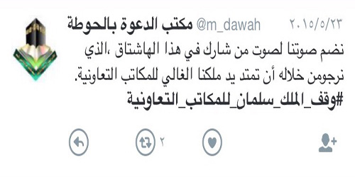 كما لقيت دعوة «الجزيرة» أصداء قوية وردود أفعال بين روّاد مواقع التواصل الاجتماعي «تويتر» حيث دشّن المغرّدون وسم: (#وقف_الملك_سلمان_للمكاتب_التعاونية) اتفق فيه المشاركون من علماء ودعاة وطلبة علم ومواطنون ومكاتب دعوية على الضرورة القصوى لدعم المكاتب التعاونية من خلال الوقف وتوفير الميزانيات السنوية لها أسوة بالجمعيات الخيرية الأخرى. راجين من خادم الحرمين الشريفين الملك سلمان بن عبدالعزيز آل سعود ـ متعه الله بالصحة والعافية ـ صدور أوامره الكريمة بتحقيق حلم المكاتب التعاونية الذي استمر أكثر من ثلاثين عاماً، وأن وقف الملك سلمان سيكون ـ بإذن الله ـ نقطة فارقة في تطوير العمل الدعوي وتميزه، وبالذات أن الدعوة بأمس الحاجة وهذا يكفيها العجز ويكون لها عوناً للتطور. ومما جاء في التغريدات نقتطف ما يأتي: