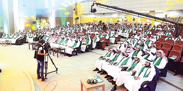 وبعد نهاية الحفل تحدث معالي مدير جامعة المجمعة الدكتور خالد بن سعد المقرن للصحفيين، حيث قال رداً على سؤال (للجزيرة) عن انطباعه بهذه المناسبة: أود في البداية أن أشكر الزملاء في وسائل الإعلام المختلفة على مشاركتهم لنا هذه المناسبة التي تحتفل فيها الجامعة بالذكرى 85 لتوحيد المملكة بقيادة الملك عبدالعزيز بن عبدالرحمن -طيب الله ثراه- وبالنجاحات المتوالية التي يشهدها الوطن في كافة المجالات، وأكد أن الجامعة بأبنائها وبناتها ومنسوبيها تفخر اليوم بأن تكون جزءاً من هذه النجاحات وأن تقدم للوطن العديد من الإنجازات لعل من أكبرها احتضان الجامعة لأكثر من 85 قسم علمي و13 كلية وأكثر من 25 ألف طالب وطالبة وأكثر من 1500 موظف وموظفة في هذه الجامعة وهذا ولله الحمد دليل على النجاح الذي تحققه الجامعة التي تساهم مساهمة طيبة في هذا الوطن الذي يستحق منا الكثير