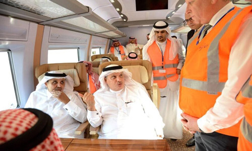 ووجه معالي وزير النقل رئيس مجلس إدارة المؤسسة العامة للخطوط الحديدية مقاول الائتلاف الإسباني بالاستمرار وبذل المزيد من الجهد لإنهاء الأعمال في هذا الجزء، واستقل معاليه والوفد المرافق العربة المخصصة لأعمال الصيانة اطلع خلالها على جاهزية هذا الجزء من المسار من حيث الانتهاء من تنفيذ جميع عناصره كالقضبان الحديدية والكيابل الكهربائية حتى موقع ورشة الصيانة الصغرى والتخزين في رابغ، ثم استقل معاليه والوفد المرافق القطار السريع في اختبار تجريبي الذي انطلق بسرعات متفاوتة بمعدل (180) كلم في الساعة، ووجه معاليه أثناء الرحلة الشركة المصنعة للقاطرات والعربات التي تعمل ضمن الائتلاف الإسباني أن يَتمَّ استكمال الاختبارات والتجارب بشكل مستمر ومكثف وفي مختلف الظروف التي تتميز بها المنطقة وحصرها، حتى يتم تلافي أي ملاحظات في تصنيع جميع القاطرات والعربات عند بدء التشغيل الفعلي لها. وفي نهاية الرحلة التجريبية التقى معاليه بعدد من الشباب السعودي الطموح الذي قاموا بقيادة القطار ممن تم تدريبهم على قيادته في إسبانيا.