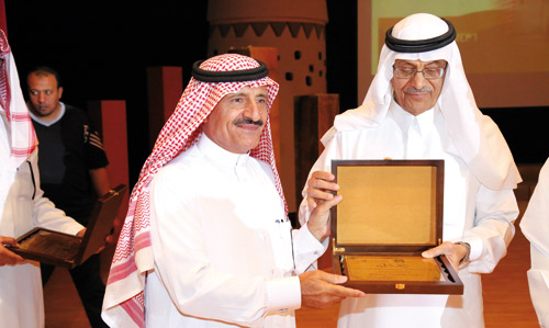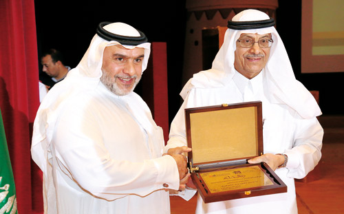 وقد قام مدير الجامعة ومعه الزميل الأستاذ خالد المالك رئيس التحرير والأستاذ حمد القاضي من الهيئة الاستشارية للكرسي بتسليم الجوائز.