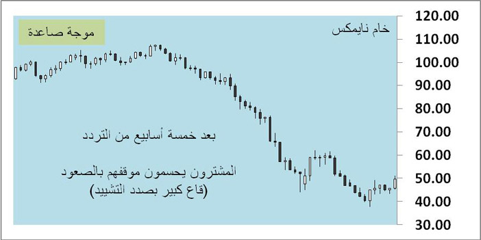 افتتح خام نايمكس أسبوعه على صعود قوي من مستوى 45 دولارًا إلى مستوى 51 دولارًا بعد حوالي شهرين مدميين من الهبوط، وأنهى الأسبوع على نمط شرائي قوي جدًا معززًا التوقع القديم في هذا التقرير بأن المنطقة بين 52 و38 دولارًا قد تكون قاعًا كبيرًا على المدى المتوسط، وكان من مماطلة وتردد الفيدرالي الأمريكي في رفع الفائدة أثر سلبي في هبوط الدولار هذا الأسبوع أمام سلة عملاته مما أعطى فرصة لخامات النفط للصعود.