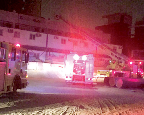 وأشار أن الحريق الذي تتواصل عمليات مكافحته اندلع في مجموعة أخشاب في أرض فضاء تقع بين سكن الممرضات ومبنى قيد الإنشاء، مبيناً أنه نظرًا لكثافة الأدخنة وحرصًا على سلامة الممرضات تم إخلاء المبنى فيما تتواصل عمليات مكافحة الحريق.