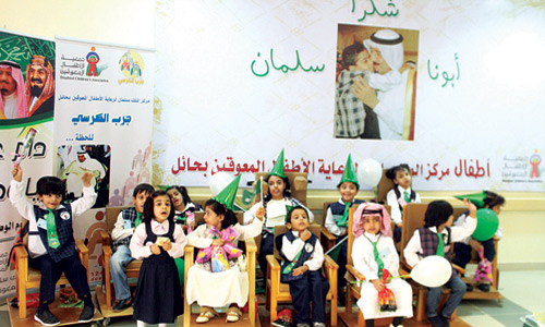 أقام مركز الملك سلمان لرعاية الأطفال المعوقين بمنطقة حائل احتفالاً بمناسبة اليوم الوطني (85) وحفل معايدة الاطفال بعيد الأضحى المبارك لعام 1436هـ وذلك بحضور المشرفة العامة على أقسام الطالبات بجامعة حائل الدكتورة حنان آل عامر.