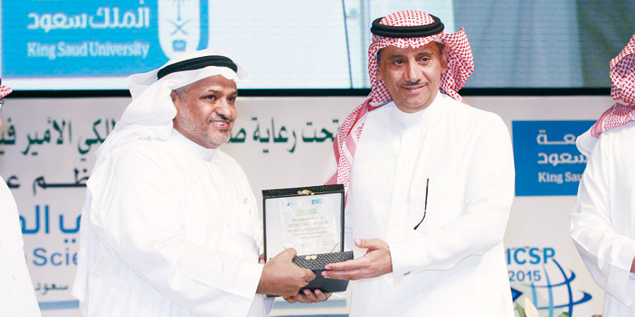 معبراً عن سروره لنجاح الجامعة في إدراج ست مجلات في شبكة قواعد المعلومات الدولية (المعروفة سابقاً ISI، وحالياً، THOMSON ROUTERS)، نكرم هذه الليلة خمسة منها لحصولها على معامل تأثير عالي وهي: المجلة العربية للكيمياء Arabian Journal of Chemistry Q1 ومجلة الجمعية الكيميائية السعودية Journal of Saudi Chemical Society Q2 ومجلة الصيدلة السعودية Saudi Pharmaceutical Journal Q2