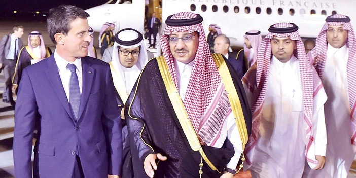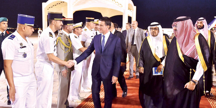 وصل دولة رئيس وزراء جمهورية فرنسا ايمانويل فالس إلى الرياض مساء أمس في زيارة للمملكة. وكان في مقدمة مستقبلي دولته لدى وصوله مطار الملك خالد الدولي صاحب السمو الملكي الأمير محمد بن نايف بن عبدالعزيز ولي العهد نائب رئيس مجلس الوزراء وزير الداخلية، وصاحب السمو الملكي الأمير محمد بن سلمان بن عبدالعزيز ولي ولي العهد النائب الثاني لرئيس مجلس الوزراء وزير الدفاع.