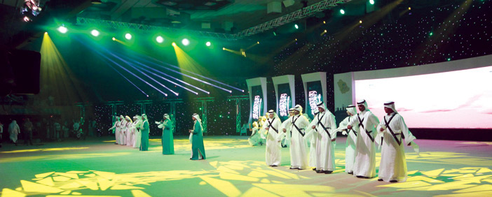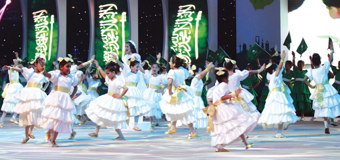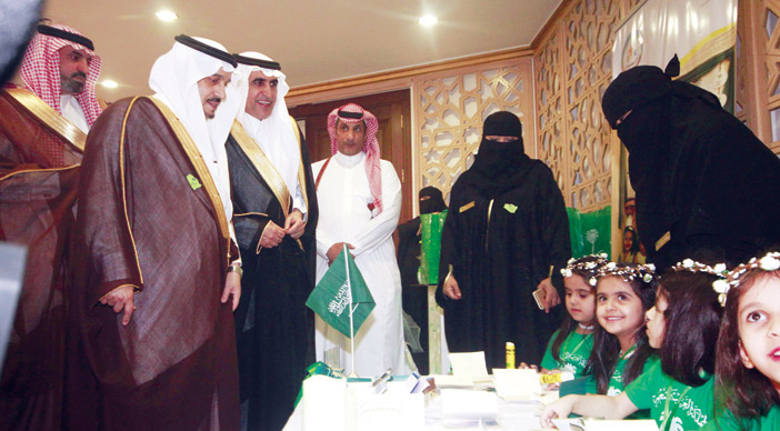 رعى صاحب السمو الملكي الأمير فيصل بن بندر بن عبدالعزيز أمير منطقة الرياض مساء أمس حفل الإدارة العامة للتعليم بمنطقة الرياض بمناسبة اليوم الوطني الـ 85 للمملكة بمجمع الأمير فيصل بن فهد الأولمبي (الصالات الخضراء)، تحت شعار «هويتي وطني» في احتفالية اشتملت على عرض نماذج متنوعة للأنشطة الطلابية بمناسبة اليوم الوطني للمملكة العربية السعودية. وكان في استقبال سموه عند وصوله معالي وزير التعليم الدكتور عزام الدخيل ووكلاء الوزارة والمدير العام للتعليم بمنطقة الرياض محمد بن عبد الله المرشد. وفور وصول سموه قدم كشافة تعليم الرياض النشيد الترحيبي، ثم اطلع سموه على أعمال وطنية قدمها أطفال الروضة 43 . وبدأ الحفل الخطابي بالقرآن الكريم، ثم عرض مرئي عن مسيرة التعليم في المملكة، بعدها قدمت طالبات المرحلة الأولية في الابتدائية 225، نشيد (موطن الأجداد)، بعد ذلك قدمت طفلة الروضة نورة صالح المناع لوحة إنشادية بعنوان (موطني عشت فخر المسلمين) . إثر ذلك قدم الطلاب لوحة إنشادية بعنوان (مملكة النور) ثم كرم الأمير فيصل بن بندر الرعاة المشاركين. وفي ختام الحفل أعرب صاحب السمو الملكي الأمير فيصل بن بندر عن شكره للإدارة العامة للتعليم بمنطقة الرياض قائلا « الشكر و التقدير على هذه الاحتفائية الرائعة في يوم الوطن، هذا الوطن الذي ننظر إليه بالتقدير والاعتزاز قيادة وشعبا وأرضا «. وأضاف « وطننا أيها الإخوة ليس ككل الأوطان، فوطننا يزخر بمعطيات عظيمة، و الواجب علينا أن نحافظ عليه في كل معطياته ومسيرته كما أن ملكنا ولله الحمد ليس ككل الملوك فهو ابن لهذه الأرض، وأخ لكل مواطن، ويعتز ويقدر كل شباب الوطن وشاباته، فباسمكم جميعا أرفع الشكر والتقدير لخادم الحرمين الشريفين الملك سلمان بن عبدالعزيز آل سعود ولسمو ولي العهد ولسمو ولي ولي العهد، وإلى كل مواطن في هذا الوطن بهذه المناسبة السعيدة، ولإدارة التعليم ولمنسوبي المدارس، والعاملين فيها جميعا ولأبنائنا الطلاب ولمعالي وزير التعليم الذي يبشر بمستقبل زاهر لتنشئة جيل متعلم مثقف له دوركبير في التنمية بإذن الله. واختتم الحفل بالعرضة السعودية شارك فيها طلاب مدارس المملكة. وأعرب المدير العام للتعليم بمنطقة الرياض عن شكره لصاحب السمو الملكي الأمير فيصل بن بندر بن عبدالعزيز أمير منطقة الرياض لتفضله برعاية الحفل، مشيرا إلى أن ذلك يأتي دافعا للجميع لمواصلة التميز والإبداعوالرقي وحافز للعاملين في الإدارة. وبين أن الإدارة قامت بتنفيذ برنامج متكامل للاحتفاء باليوم الوطني في أكثر من 3000 مدرسة للبنين والبنات تضم أكثر من مليون طالب وطالبة عبر فعاليات ومسابقات متنوعة تهدف إلى تعزيز الوطنية في نفوسهم وإبراز ما تحقق للمملكة العربية السعودية من نعمة وأمن و خير بعد توحيدها على يد المؤسس الملك عبدالعزيز - رحمه الله - ، الذي أرسى قواعدها وفق الشريعة الإسلامية ونجح في تأسيس البلاد، بعد أن نشر العلم وسعى إلى تحقيق وترسيخ مبدأ المواطنة الحقيقية. من جهته بين مساعد المدير العام للشؤون التعليمية حمد بن عبدالله الشنيبر أن الحفل تزامن معه إقامة عدة فعاليات متنوعة خلال يوم الاحتفاء في عدد من المواقع بالرياض، عبارة عن مهرجانات تفاعلية داخل الأسواق والأماكن العامة، منها مرسم وفعاليات ومسابقات في أسواق بانوراما مول والقصر مول ومتنزه عكاظ البيئي وحديقة محمد بن القاسم بالروابي ، إضافة إلى إقامة المباراة النهائية في بطولة كأس المؤسس بين طلاب المدارس كما أقيم يوم أمس الثلاثاء مسيرة للمشي الحر بعنوان هويتي وطني بممشى طريق الملك عبدالله بجوار وزارة التعليم.