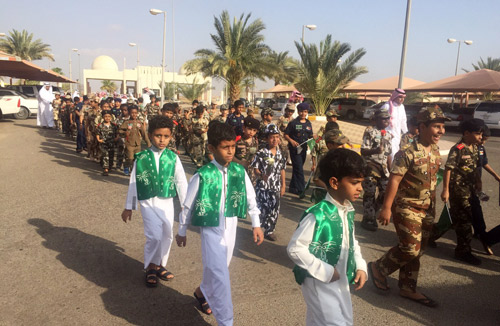 وشارك «العقيبي» في سلسلة من الزيارات مدارس المحافظة احتفالاتها باليوم الوطني الـ85 حيث زار عددا من المدارس استمع خلالها إلى الكلمات والقصائد الوطنية والأناشيد والعروض المرئية . كما استقبل «العقيبي «عددا من طلاب المحافظة وأولياء أمور الطلاب اليمنيين بمقر الإدارة , و كان الطلاب قد دخلوا إلى فناء الإدارة بلباسهم المدني والعسكري مشكلين مسيرة رسموا من خلالها لوحة تجسد تلاحم رجال الأمن مع المواطن .. و في لوحة أخرى عبرت الجالية اليمنية فيها عن شكرها للملك سلمان من خلال المسيرة بصور معبرة عن ما تكنه للقيادة الرشيدة .. صاحب المسيرة بعضُ الأناشيد والقصائد الوطنية في حب الوطن وفدائه .