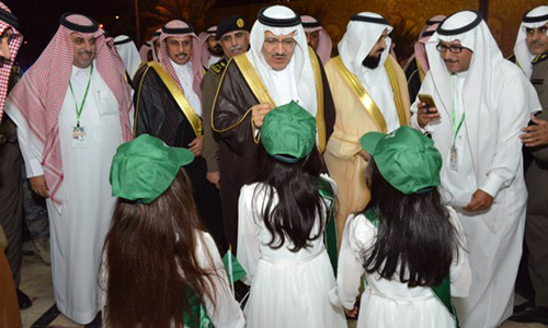 رفع صاحب السمو الأمير الدكتور مشعل بن عبدالله بن عبدالعزيز بن مساعد، أمير منطقة الحدود الشمالية أسمى آيات التهاني إلى مقام خادم الحرمين الشريفين وولي العهد وولي ولي العهد بمناسبة ذكرى التأسيس لليوم الوطني. جاء ذلك خلال رعاية سموه للحفل الذي نظمته الإدارة العامة للتعليم بالمنطقة بهذه المناسبة. ولدى وصول سموه إلى مقر الحفل الذي أقيم بقاعة الأمير عبدالعزيز بن مساعد بعرعر كان في استقباله مدير عام التعليم عبدالرحمن القريشي، وعدد من المسئولين، ثم قدمت ثلاث من البراعم قصيدة ترحيبية بعد ذلك قص سموه الشريط إيذاناً بافتتاح المعرض المصاحب لهذه المناسبة من إعداد الطلاب والطالبات، حيث تجول سموه على أرجائه مستمعاً إلى إيجاز عن محتوياته والذي اشتمل على العديد من الصور والرسومات التي تحكي قصة توحيد هذه البلاد. بعد ذلك شرف سموه الحفل الخطابي المعد بهذه المناسبة، وألقى مدير عام التعليم كلمة واستعرض الإنجازات العظيمة التي تحققت لأبناء هذا الوطن منذ أيام التوحيد لهذا الكيان منذ التأسيس حتى الآن، تلا ذلك أوبريتاً وطنياً يحتوي على عدد من اللوحات التي تحكي قصة التوحيد لهذه البلاد ولوناً من العرضة السعودية. بعد ذلك قدم مدير التعليم درعا لسموه بهذه المناسبة.