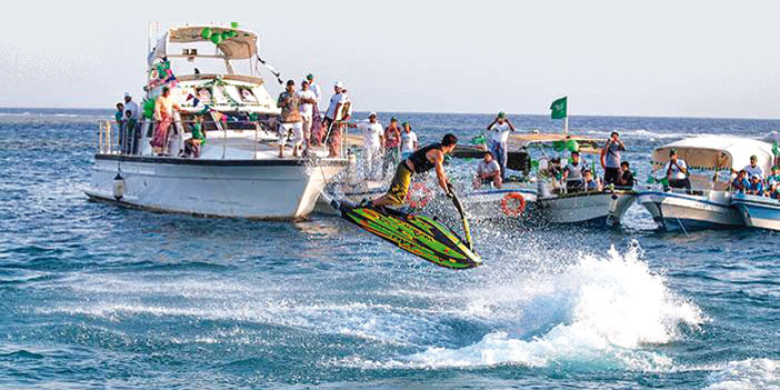 انطلقت فعاليات مهرجان «الوجه وجهتنا بفرحة وطن 85» يوم أمس الأول في محافظة الوجه التابعة لمنطقة تبوك, وتنظمه لجنة التنمية السياحية في المحافظة لمدة 15 يوماً, بحضور محافظ الوجه عمار الحقباني. واشتملت الفعاليات على مسيرة الهجن والخيول، وعروض الدبابات البحرية للمحترفين العالميين في منطقه زاعم السياحيه، وعروض هواة الصقور، كما اشتملت على أجنحة خاصة بمكتب التعليم بالوجه، ومكتب الضمان الاجتماعي, والإطفاء الخاص بالطيران المدني، والمجسمات البحرية, والسياحة والتراث الوطني، وسوق تجاري.