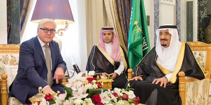 استقبل خادم الحرمين الشريفين الملك سلمان بن عبدالعزيز آل سعود - حفظه الله - في قصر اليمامة أمس معالي وزير الخارجية الألماني الدكتور فرانك فالتو شتاينماير والوفد المرافق له. وجرى خلال الاستقبال استعراض العلاقات الثنائية بين البلدين وسبل دعمها وتعزيزها في شتى المجالات ، بالإضافة إلى بحث مستجدات الأحداث الإقليمية والدولية. حضر الاستقبال صاحب السمو الملكي الأمير محمد بن نايف بن عبدالعزيز ولي العهد نائب رئيس مجلس الوزراء وزير الداخلية ومعالي وزير الدولة عضو مجلس الوزراء الدكتور مساعد بن محمد العيبان، ومعالي وزير التجارة والصناعة الدكتور توفيق بن فوزان الربيعة، ومعالي وزير الثقافة والإعلام الدكتور عادل بن زيد الطريفي، ومعالي وزير الخارجية الأستاذ عادل بن أحمد الجبير، والسفير الألماني لدى المملكة بوريس روغه.