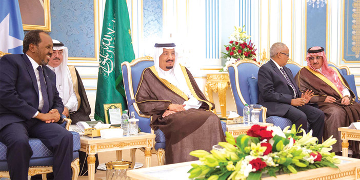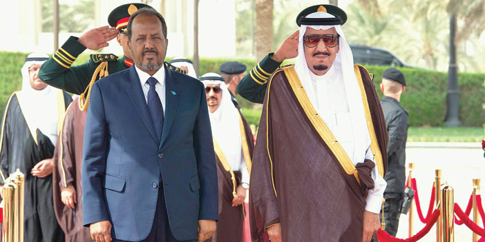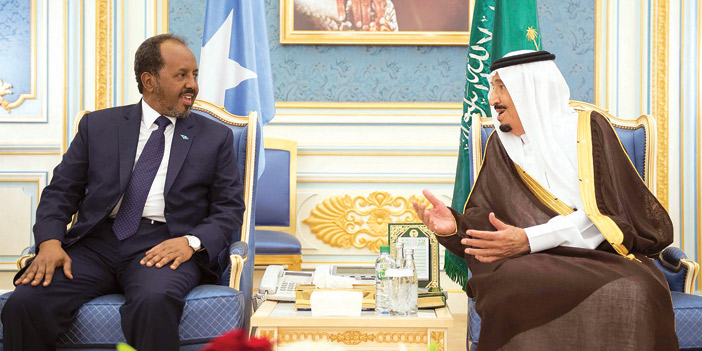وكان خادم الحرمين الشريفين الملك سلمان بن عبدالعزيز آل سعود -حفظه الله- قد استقبل في قصر اليمامة أمس فخامة الرئيس حسن شيخ محمود رئيس جمهورية الصومال الفيدرالية. كما كان في استقبال فخامته، صاحب السمو الملكي الأمير فيصل بن بندر بن عبدالعزيز أمير منطقة الرياض، وصاحب السمو الملكي الأمير محمد بن نايف بن عبدالعزيز ولي العهد نائب رئيس مجلس الوزراء وزير الداخلية.