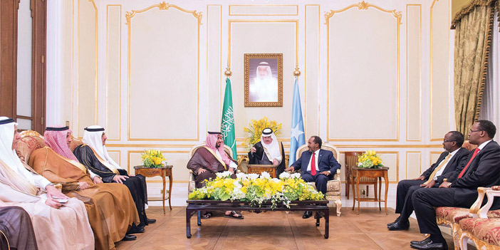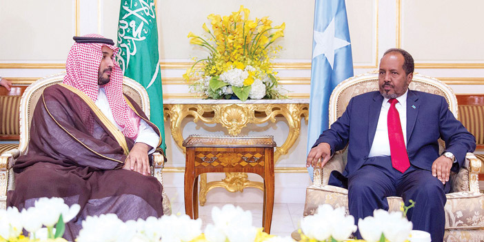 وجرى خلال اللقاء استعراض فرص التعاون بين البلدين في مختلف المجالات، وروابط تطويرها، بالإضافة إلى تبادل الآراء حول عدد من الموضوعات ذات الاهتمام المشترك. حضر اللقاء معالي وزير الدولة عضو مجلس الوزراء الدكتور عصام بن سعد بن سعيد الوزير المرافق، ومعالي المستشار في الديوان الملكي المشرف العام على مكتب وزير الدفاع الأستاذ فهد العيسى، ونائب رئيس الصندوق السعودي للتنمية العضو المنتدب المهندس يوسف بن إبراهيم البسام، والمستشار بالديوان الملكي ياسر الرميان. فيما حضر من الجانب الصومالي معالي وزير الخارجية وتشجيع الاستثمار عبدالسلام هدليه عمر، وسفير جمهورية الصومال لدى المملكة طاهر محمود جيلي، ورئيس المخابرات الجنرال عبدالرحمن محمد نور بري.
