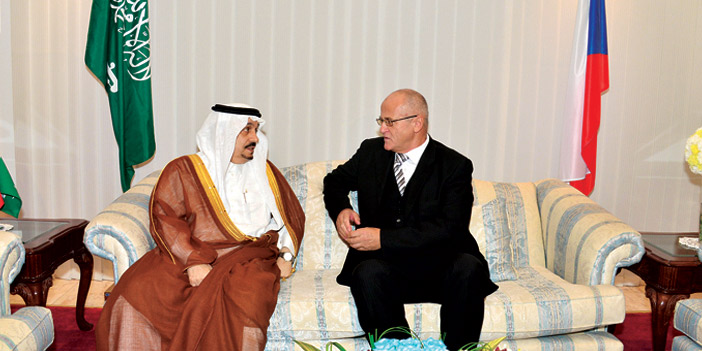 شرف صاحب السمو الملكي الأمير فيصل بن بندر بن عبدالعزيز أمير منطقة الرياض مساء امس حفل سفارة جمهورية التشيك لدى المملكة بمناسبة اليوم الوطني لبلادها وذلك بمنزل السفير بالرياض. وكان في استقبال سموه في مقر الحفل سفير جمهورية التشيك لدى المملكة يري سلافيك، وعدد من مسؤولي السفارة، حضر الحفل عدد من أعضاء السلك الدبلوماسي المعتمدين لدى المملكة.