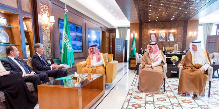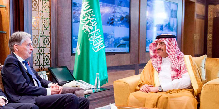 استقبل صاحب السمو الملكي الأمير محمد بن نايف بن عبدالعزيز ولي العهد نائب رئيس مجلس الوزراء وزير الداخلية - حفظه الله - في مكتبه بديوان الوزارة امس معالي وزير الخارجية البريطاني فيليب هاموند والوفد المرافق.