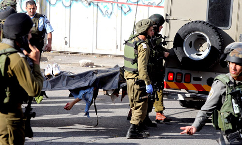 من جهة اخرى قالت الشرطة والجيش الاسرائيليان إن شرطيا قتل بالرصاص فلسطينيا طعن جنديا في الضفة الغربية المحتلة امس الخميس استمرارا لموجة العنف التي تفجرت منذ نحو شهر. ووقع حادث الطعن الأخير -مثل حوادث الطعن السابقة- في مدينة الخليل بالضفة الغربية مما يشير إلى أن العنف يمتد إلى الضفة الغربية من اسرائيل والقدس حيث أقامت الشرطة الحواجز في الأحياء الفلسطينية التي ينتمي إليها الكثير من المهاجمين المزعومين.