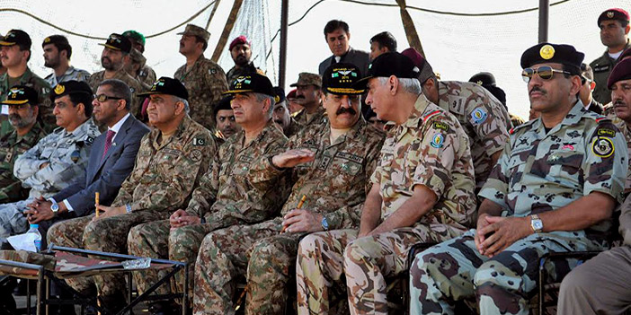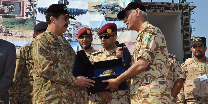 أكد رئيس أركان الجيش الباكستاني الجنرال راحيل شريف أن أي تهديد لسيادة ووحدة أراضي المملكة سيثير رد فعل قوي من جانب باكستان. وأوضح شريف خلال حضوره الفعاليات الختامية للتمرين المختلط التعبوي الأول (الشهاب) بين قوات الأمن الخاصة بوزارة الداخلية ونظيرتها الباكستانية بمركز مكافحة الإرهاب التابع للجيش الباكستاني في منطقة جهلوم بإقليم البنجاب الباكستاني أمس وفقاً لما جاء في بيان صادر عن مكتب العلاقات العامة للقوات المسلحة الباكستانية أن المملكة العربية السعودية وجمهورية باكستان الإسلامية تتمتعان بعلاقات أخوية قوية تستند على التعاون الوثيق.