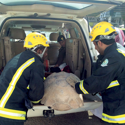 أثارت سلحفاة معمرة الرعب في شوارع وادي الدواسر، حيث كانت مغمورة بالطين قرب أحد المزارع. وفي التفاصيل باشرت فرق الدفاع المدني بمحافظة وادي الدواسر صباح أمس، بلاغا من مواطنين عن مشاهدة حيوان غريب بالقرب من أحد المزارع وعلى ضوء البلاغ انتقلت دورية دفاع مدني للوقوف على البلاغ يرافقها فرقة إنقاذ. وقال الرائد محمد الحمادي المتحدث الرسمي للدفاع المدني بمنطقة الرياض إنه بالوصول إلى الموقع اتضح أن الحيوان محل البلاغ سلحفاة كبيرة، معمرة ومغمور بالطين تسير بجوار الطريق العام، حيث تم نقلها من الموقع، وسلمت إلى البلدية، ليتم نقلها إلى هيئة حماية الحياه الفطرية. ولفت الرائد محمد الحمادي المتحدث الرسمي للدفاع المدني بمنطقة الرياض، إلى أن طبيبا بيطريا من مكتب الزراعة بالمحافظة باشر بإجراء خدمات بيطرية للسلحفاة، للحفاظ على حياتها.