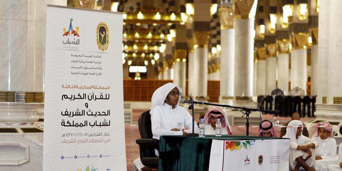 انطلقت اليوم الثلاثاء في رحاب المسجد النبوي الشريف بالمدينة المنورة المسابقة المركزية الثالثة للقرآن الكريم والحديث الشريف التي تنظمها الرئاسة العامة لرعاية الشباب، ممثلة بوكالة شئون الشباب، وذالك خلال الفترة من 21 إلى 24-1-1437هـ، بمشاركة 100 شاب من جميع مكاتب الرئاسة في مختلف مناطق المملكة، وهي (مكتب مكة المكرمة ومكتب المدينة المنورة ومكتب الخرج وجدة والشرقية وشقراء والرس وجازان والقطيف وتبوك وعرعر وعسير والجوف والأحساء والزلفي ونجران وحائل.