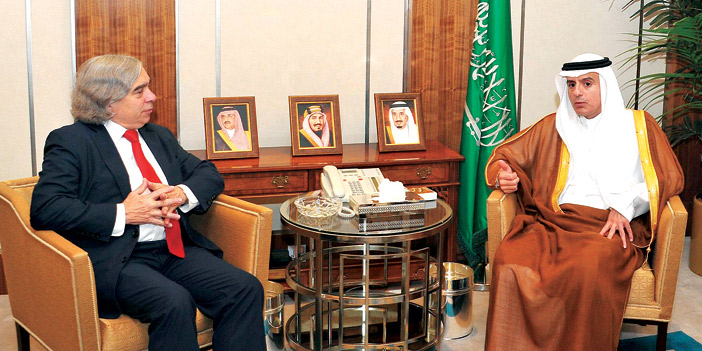 من جهة أخرى التقى وزير الخارجية الأستاذ عادل بن أحمد الجبير, في مكتبه بمقر الوزارة بالرياض أمس، وزير الطاقة الأمريكي الدكتور آرنست مونيز.