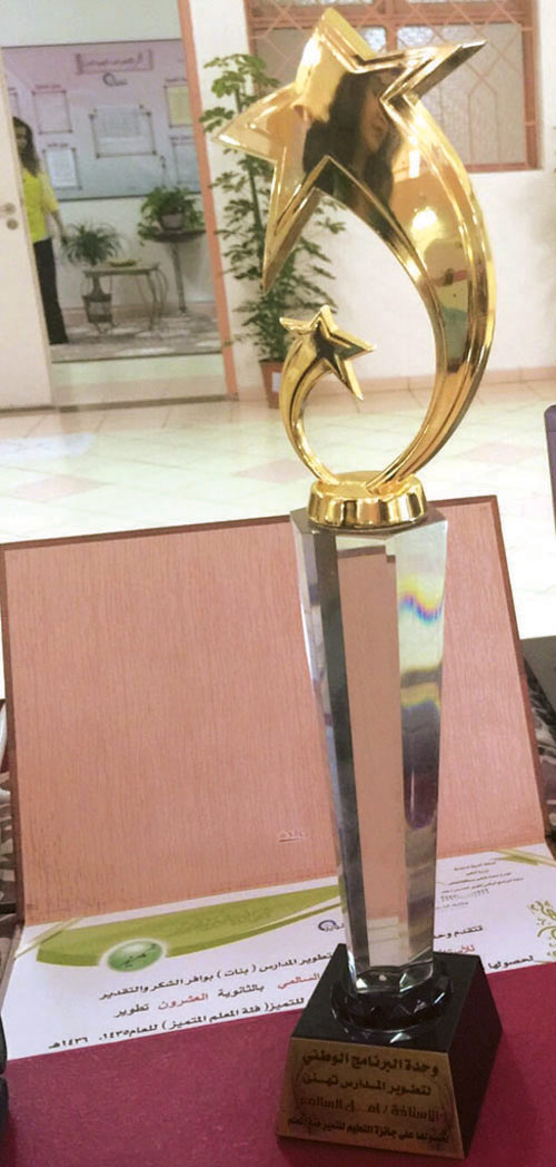 أقامت وحدة البرنامج الوطني لتطوير المدارس في الطائف (بنات)، الخميس الماضي، بمقر الثانوية العشرين، حفل تكريم المعلمة أمل مصلح السالمي؛ تقديرًا وإشادة لتحقيقها المركز الأول على مستوى الوطن في جائزة التعليم للتميز فئة المعلم.