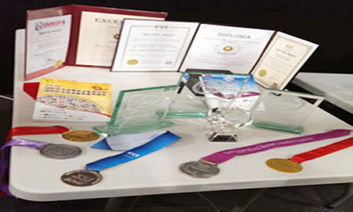 وبينت الدكتورة هدى أن طالبات البكالوريوس: بدور المغربي, ومها القحطاني, وذكرى العتيبي، اللاتي يدرسن تخصّص علاج طبيعي حصلن على الجائزة الذهبية المزدوجة والفوز بميدالية ذهبية على مستوى العالم في المعرض البريطاني للابتكارات والاختراعات 2015 م نظير «ابتكارهن جهازاً لإعادة تأهيل وتحفيز الإحساس لمرضى الاعتلال الحسي», كما حصلت الطالبتان: بدور المغربي ومريم العتيبي من نفس التخصص على الجائزة الماسية - أعلى جائزة في المعرض - والجائزة البلاتينية على مستوى العام 2015 م لابتكارهن نظارة لمصابي العمى الدماغي, فيما حصلت ذكرى العتيبي, وريم البركة, وريم القحطاني على الميدالية الذهبية لجهاز «التحفيز الحسي الحركي لعلاج الاضطرابات الوجهية والنتائج الوظيفية لشلل الرعاش». وتحدثت الطالبة بدور المغربي نيابة عن زميلاتها عن اختراعهن وهو جهاز لإعادة تأهيل وتحفيز الإحساس لمرضى الاعتلال الحسي الذي يقوم بعلاج استخدام الحواس المختلفة لمساعدة المصابين بضعف في الجهاز الحسي، ويعمل على التحسين الوظيفي في الخلايا المتضررة التي تعوق الأداء الحركي الوظيفي ويجدون صعوبة في التفاعل مع البيئة الخارجية، مما يوجد لهم التحديات في أداء المهام اليومية, ولوحظ بعد تجربته على 38 مريضاً التقدم والتحسن فيها بنسبة 80 - 90 %، فضلاً عن أنه يمكن للمريض استخدامه بكل وقت ومكان لصغره وسهولة حمله.