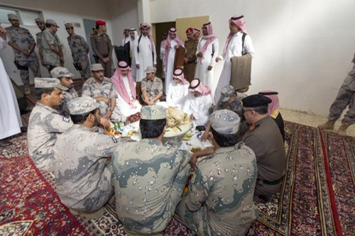 واستمع سموه من قائد حرس الحدود بالمنطقة اللواء سعد القحطاني، شرحا عن مهام كل مركز وحدود تغطيته والإمكانيات المتاحة فيها. بعد ذلك شارك سمو أمير منطقة الجوف أبناءه من أفراد ومنسوبي قطاع حرس الحدود بالمنطقة وجبة الغداء، وتبادل معهم الأحاديث الودية.