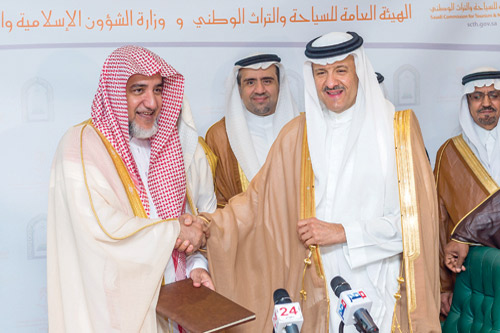وقال سموه في تصريح صحفي عقب توقيعه مع معالي الشيخ الدكتور صالح بن عبد العزيز آل الشيخ وزير الشؤون الإسلامية والأوقاف والدعوة والإرشاد امس الأحد في مقر الوزارة بالرياض اتفاقية تعاون إلحاقية بين الهيئة والوزارة في مجالات مواقع التاريخ الإسلامي، والمساجد التاريخية، ومساجد محطات واستراحات الطرق، ومباني الأوقاف التراثية: «المساجد لها دور كبير ورئيس في تقوية الروابط بين المواطنين وتقويتها وتعزيز وحدتهم، وخادم الحرمين الشريفين يحفظه الله، وهو الذي كلفنا بهذا اللقاء والعمل سوياً للعناية بالمساجد التاريخية ومساجد الطرق والنهوض بمستواها مستهدفين قبل كل شيء المهمة الأساس المتمثلة في تعزيز دور المسجد ومكانته في المجتمع، ونحن نحتاج إلى أن يعتبر كل مواطن نفسه مسؤولا عن المسجد، فالمساجد ليست مباني حكومية، بل هي بيوت الله وهو ما يجعل لزاما علينا جميعا واجب الاعتناء ببيوت الله قبل أن نعتني ببيوتنا وتهيئتها لتكون مصدرا للراحة ومكانا للاطمئنان يرتاح في بيت الله قبل أن يرتاح في بيته وأفضل مما يرتاح في بيته، ونريد أن تكون المساجد جاذبة للأطفال والنشء والشباب ويشعرون فيها بالراحة والمتعة.