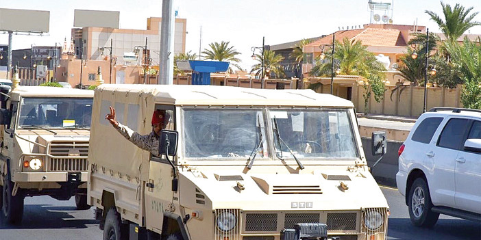 وأضاف اللواء الشهراني بأنه يرى الحماس وحب الوطن متجسدًا لدى كل قوات الحرس الوطني في نجران وقال: إن هذا وسام وشرف لنا جميعًا مع زملاء وإخوان لنا في خدمة هذا الوطن العزيز ونشكر خادم الحرمين الشريفين الملك سلمان على تشريفنا بهذه المهمة الوطنية الكبرى، كما ساق التهنئة إلى وزير الحرس الوطني متعب بن عبدالله بن عبد العزيز بمناسبة الإنجازات الميدانية المتوالية لقوات الحرس الوطني وتعاملها الحازم مع كل التطورات بالتنسيق مع مراكز العمليات.