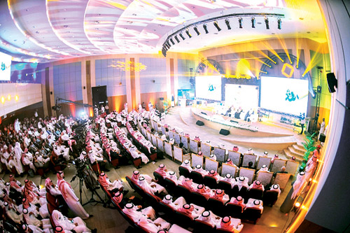 بحضور سمو الأمير عبد الرحمن بن عبد الله بن فيصل محافظ المجمعة ومعالي وزير الشؤون الاجتماعية الدكتور ماجد بن عبدالله القصبي وسمو الشيخ الدكتور عبد العزيز بن عبد الرحمن آل ثاني رئيس مجلس أمناء الصناديق الإنسانية بمنظمة التعاون الإسلامي، ونيابة عن معالي وزبر التعليم، رعى معالي مدير جامعة المجمعة الدكتور خالد بن سعد المقرن حفلَ فعاليات ملتقى الجامعات الخليجية والمسؤولية الاجتماعية تحت شعار (رؤى إستراتيجية وممارسات فاعلة)، والذي تستضيفه جامعة المجمعة خلال المدة من 10 – 12 / 2 / 1437 هـ، ويشتمل على العديد من الجلسات العلمية وورش العمل للرجال والنساء طيلة أيام الملتقى لفترتين صباحية ومسائية، يقدمها نخبةٌ من القياديين وأعضاء هيئة التدريس في الجامعات الخليجية والمتميزين في برامج المسؤولية الاجتماعية. حيث قام سمو محافظ المجمعة ومعالي وزير الشؤون الاجتماعية ورئيس مجلس أمناء الصناديق الإنسانية بمنظمة التعاون الإسلامي ومعالي مدير الجامعة بافتتاح المعرض المقام بهذه المناسبة، والذي شارك فيه مجموعة من الجامعات الخليجية والسعودية ومؤسسات الخدمة الاجتماعية. وبعد أن تم قص الشريط تجول الجميع في أرجاء المعرض واطلعوا وعلى أجنحة الجهات المشاركة التي قامت بعرض مبادراتها وأعمالها ومساهماتها في المسؤولية الاجتماعية، بعد ذلك توجه الجميعُ إلى مقر الحفل الذي حضره عدد من أصحاب السعادة مديري الجامعات الخليجية والسعودية ومديري الجهات ذات العلاقة بالخدمة الاجتماعية، إذ بدأ الحفل الذي قدم فقراته الزميل الأستاذ عبد الله الشهري من التلفزيون السعودي بتلاوة آيات من القرآن الكريم، ثم ألقى الدكتور مسلَّم الدوسري - وكيل الجامعة رئيس اللجنة التحضيرية للملتقى كلمة رحب فيها بالحضور وأوضح أنه تماشياً مع إستراتيجية الجامعة في توجهها نحو التحول إلى المهنية العالية في القيام بوظائفها المنوطة بها، وبناءً على توجيهات معالي مدير الجامعة الداعمة لهذا التوجه فقد طلبت الجامعةُ من وزارة التعليم الموافقةَ على تنظيم ملتقى الجامعات الخليجية والمسؤولية الاجتماعية (رؤى إستراتيجية وممارسات فاعلة). وقد تلقت الجامعة موافقة الوزارة على هذا الطلب، وبناءً عليه فقد صدرت موافقة معالي مدير الجامعة - رئيس اللجنة العليا المنظمة لهذا الملتقى - في تشكيل اللجنة التحضيرية لعقد الملتقى، والتي انبثقت منها عددٌ من اللجان العاملة والمتخصصة، وضاف أن الملتقى يهدفُ إلى تحقيقِ عدد من الأهداف التي تصب في المسؤولية الاجتماعية، ثم ألقى معالي مدير الجامعة - رئيس اللجنة العليا للملتقى - الدكتور خالد المقرن كلمة رحب فيها بصاحب السمو الأمير عبدالرحمن بن عبدالله بن فيصل محافظ المجمعة، وبمعالي الدكتور ماجد بن عبدالله القصبي وزير الشؤون الاجتماعية، وبسمو الشيخ الدكتور عبدالعزيز بن عبدالرحمن آل ثاني رئيس مجلس أمناء الصناديق الإنسانية بمنظمة التعاون الإسلامي، وأصحاب السعادة والحضور وأعرب عن سعادته بالمشاركة في هذا العمل، ونوَّه بالدعم الكبير الذي تلقاه الجامعة من لدن حكومة خادم الحرمين الشريفين الملك سلمان بن عبدالعزيز آل سعود - حفظه الله - وصاحب السمو الملكي الأمير محمد بن نايف بن عبدالعزيز ولي العهد نائب رئيس مجلس الوزراء ووزير الداخلية وصاحب السمو الملكي الأمير محمد بن سلمان بن عبدالعزيز ولي ولي العهد النائب الثاني لرئيس مجلس الوزراء ووزير الدفاع، مشيراً في الوقت ذاته إلى أن الجامعةَ عملت على تحويل الدعم الحكومي الهائل إلى منجز حيث بدأت الجامعة بخمسة آلاف طالب وطالبة عند تأسيسها، وتضاعف هذا العدد إلى أكثر من 25 ألف طالب وطالبة في مختلف الكليات والتخصصات، وتضاعف عدد أعضاء هيئة التدريس والموظفين من 300 إلى أكثر من 5000 من أعضاء هيئة التدريس والموظفين، وبيَّن معاليه أن هذه الأرقام تؤكد أننا في بلد الخير والدعم والرخاء، وأضاف معاليه بأن ذلك ما كان ليتحقق لولا فضل الله أولاً ثم عزم الرجال المخلصين من أبناء هذا الوطن، و