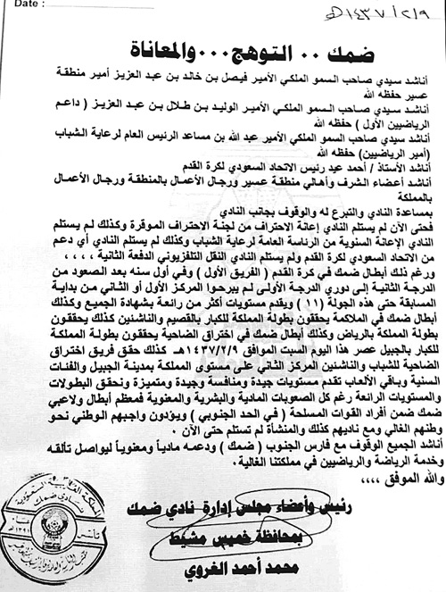 وناشدت الإدارة خلال بيانها الصادر يوم السبت الماضي أمير منطقة عسير والأمير الوليد بن طلال والرئيس العام لرعاية الشباب ورئيس اتحاد القدم إلى جانب أعيان ورجال أعمال المنطقة ، بمساعدة النادي والتبرع له والوقوف بجانبه نظير ما يمر به من ظروف صعبة أثرت على نتائجه في مختلف الألعاب. وأشارت الإدارة إلى المستويات الرائعة التي يقدمها الفريق الأول في أول سنة بعد الصعود من الدرجة الثانية للأولى، كذلك تحقيق بطولة المملكة للكبار في لعبة الملاكمة بالقصيم والناشئين بالرياض، بالإضافة إلى المسابقات الأخرى.