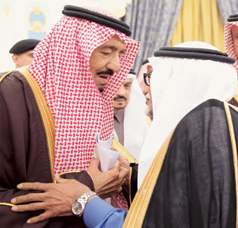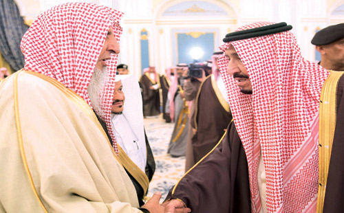 استقبل خادم الحرمين الشريفين الملك سلمان بن عبدالعزيز آل سعود -حفظه الله- في قصر اليمامة أمس، أصحاب السمو الأمراء، وسماحة مفتي عام المملكة، وأصحاب الفضيلة العلماء، وجموعًا من المواطنين الذين قدموا للسلام عليه - رعاه الله -.