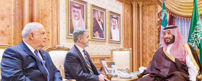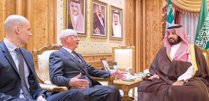 من جهة ثانية، اجتمع صاحب السمو الملكي الأمير محمد بن سلمان بن عبدالعزيز ولي ولي العهد النائب الثاني لرئيس مجلس الوزراء وزير الدفاع في مكتبه بالمعذر أمس مع رئيس لجنة الشؤون الخارجية بالبرلمان البريطاني كريسبن بلونت.
