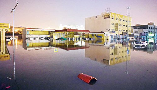 الجدير ذكره ان طول الطريق لتجمع المياه اكثر من 2 كم و400 متر ولم يتم تصريف السيول حتى فجر يوم الجمعة.