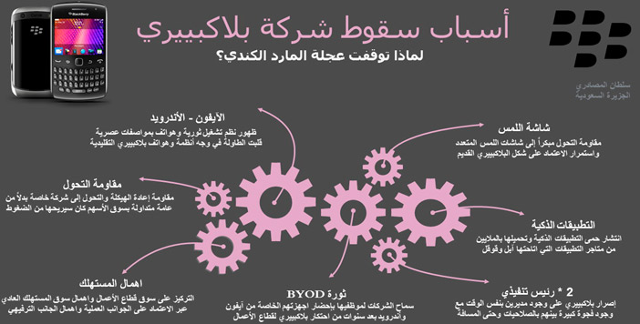 هي الأسواق كما شاهدتها دولٌ. قصة نجاح شركة بلاكبييري الكندية في اجتياحها لأسواق الهاتف المحمول العالمية وسيطرتها شبه الكاملة عليه لحوالي العقد، قصة عجيبة لا يوازيها غرابة إلا قصة فشلها وسقوطها من صدارة صانعي الهواتف المحمولة إلى الدرك الأسفل من السوق، بسبب أخطاء إستراتيجية كارثية عصفت بشركة بلاكبييري وأسقطتها من عرشها، تحولت قصة نجاح وفشل الشركة إلى أنموذج جدير بالدراسة وصدرت الكثير من الدراسات والتحليلات وحتى الكتب حول رحلة الشركة الكندية من القاع إلى القمة ذهابا وإيابا. العالم يعرف تقريباً كيف نجحت بلاكبييري، لكن السؤال المُحير يكمن في معرفة السبب خلف فشلها، كيف فشلت؟ لماذا وقف تنفيذو بلاكبييري مكتوفي الأيدي أمام غرق سفينة بلاكبييري؟ هل مٌنحت بلاكبييري تأشيرة خروج بلا عودة من الأسواق العالمية؟ هل يمكن أن تعود؟
