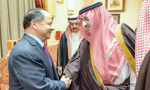 وكان خادم الحرمين الشريفين الملك سلمان بن عبدالعزيز آل سعود -حفظه الله-، قد استقبل في قصره بالرياض، أمس، رئيس إقليم كردستان العراق مسعود بارازاني، الذي يزور المملكة حالياً.
