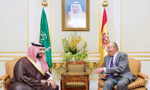 التقى صاحب السمو الملكي الأمير محمد بن سلمان بن عبدالعزيز ولي ولي العهد النائب الثاني لرئيس مجلس الوزراء وزير الدفاع، مساء أمس، في الرياض، جلالة الملك خوان كارلوس ملك مملكة إسبانيا السابق، وجرى خلال اللقاء تبادل الأحاديث الودية.